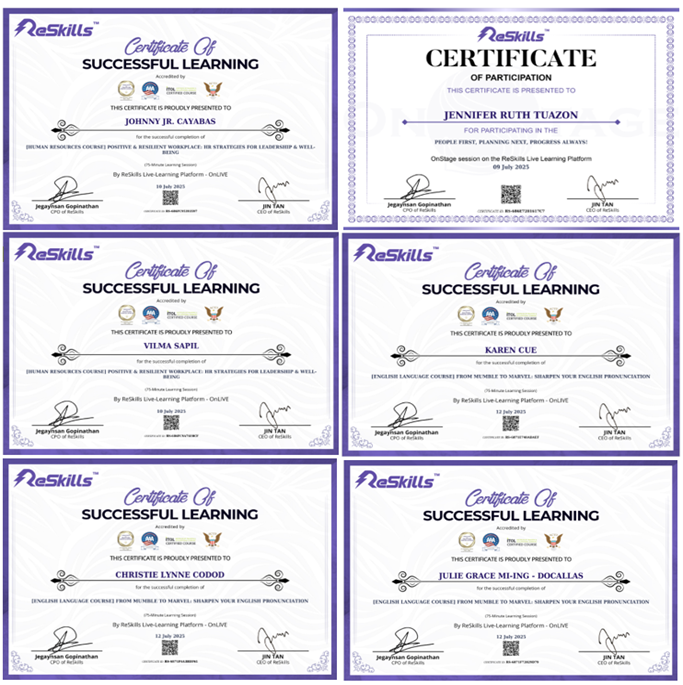 Each completed session provides participants with an internationally accredited certificate, validating their acquired competencies and aligning their professional development with global standards.