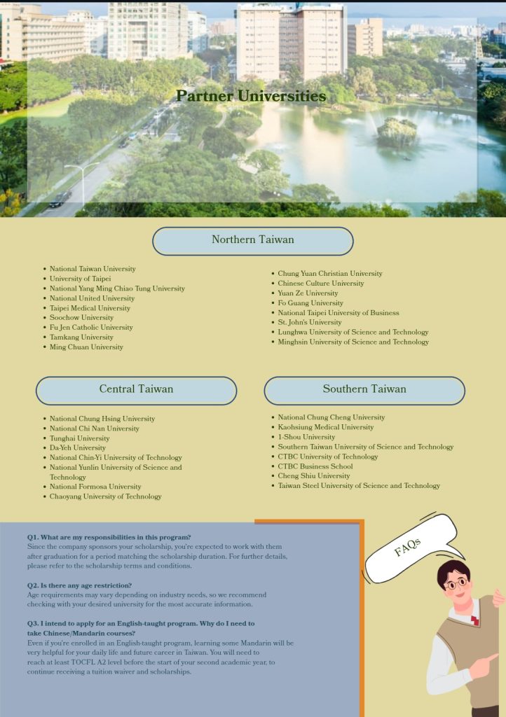- Programs are offered by top partner universities across Northern, Central, and Southern Taiwan, focusing on STEM, Semiconductor, and Finance fields.